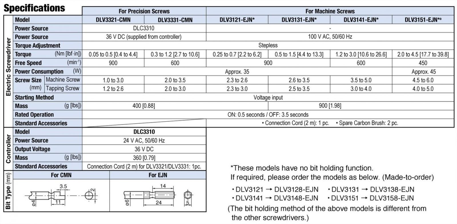 ไขควงไฟฟ้าใช้แปรงถ่าน รุ่น DLV3100/3300 Series (For Automation)