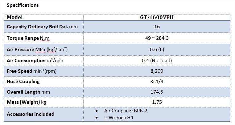 -เครื่องบล็อคลมระบบ V-HAMMER ถูกออกแบบมาให้ค่าแรงบิดสูงและขนาดกะทัดรัด น้ำหนักเบาเป็นพิเศษเมื่อเทียบกับรุ่นและขนาดเดียวกัน