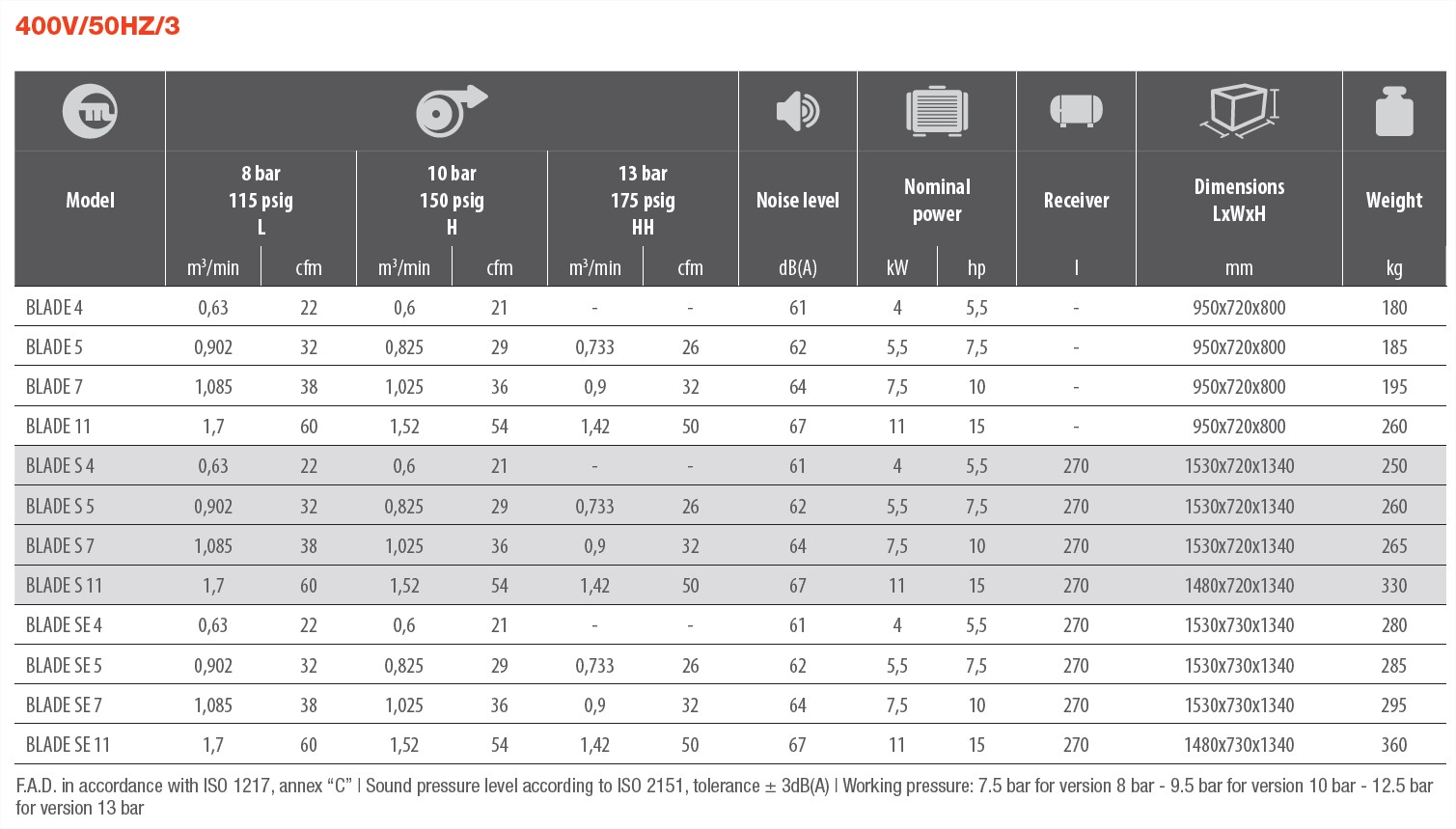 Mattei Blade 4 -5-7-11 series belt driven air compressors are easy to handle, robust and versatile, and are the perfect solution for small and medium-sized companies and small craft businesses.