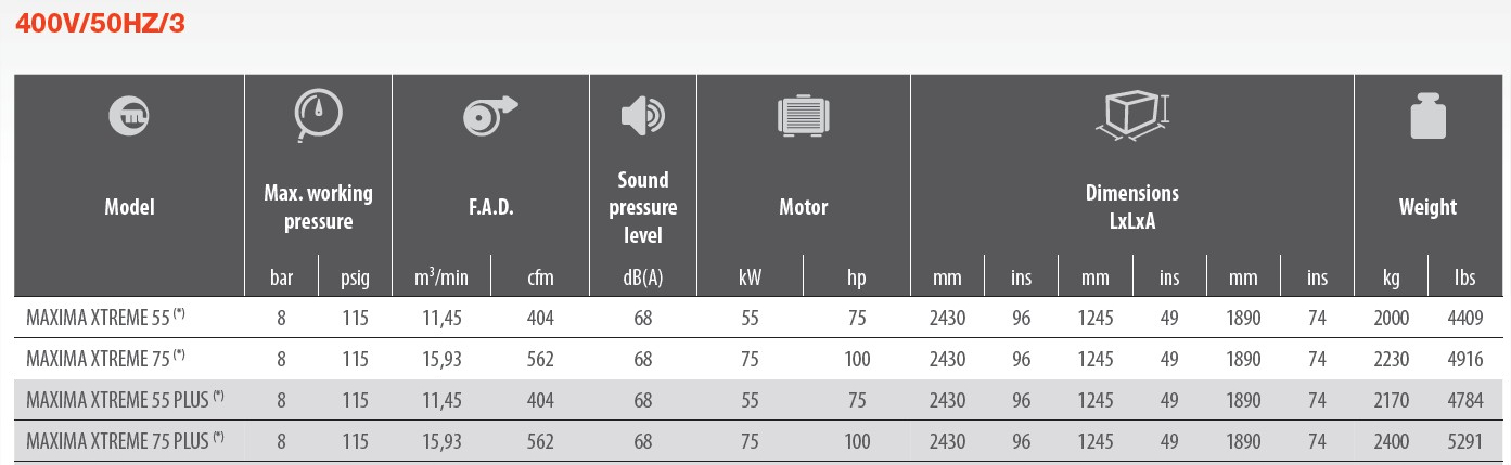 Designed to save energy and protect the environment, the latest-generation rotary vane Maxima Xtreme 55-75 compressors are made to cater for the needs for large and steady compressed air volumes for prolonged periods of time.