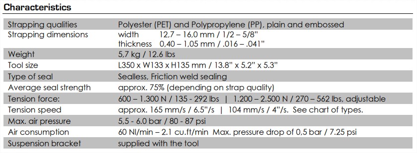 - Strap tension can be set and blocked for correct and consistent secured packages