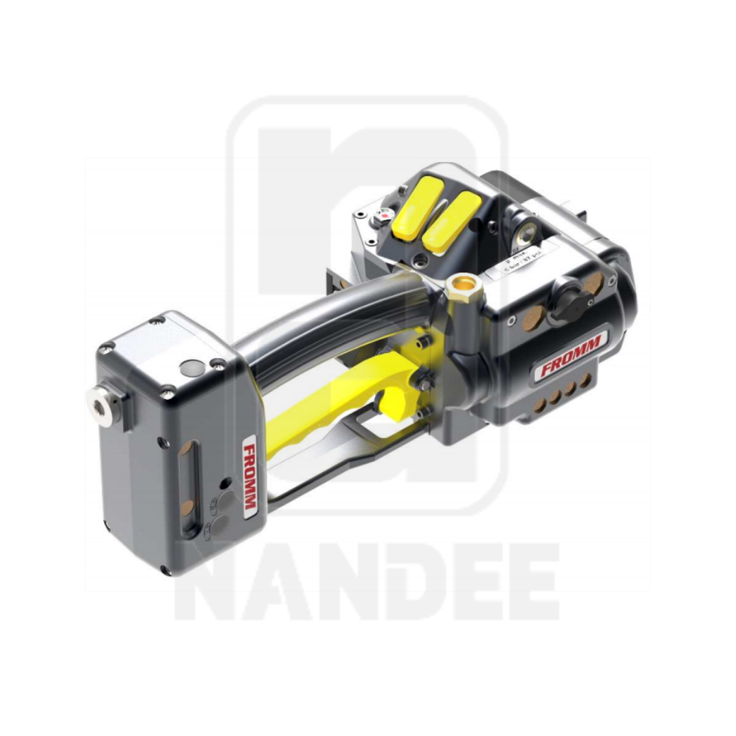 The FROMM P357 is a reliable, sealless all-round industrial Strapping Tool, based on proven FROMM technology. Due to its well balanced construction and the ergonomically positioned control buttons – allowing single hand operation, it can conveniently be used in all kinds of vertical and horizontal strapping applications. The operator can, for his own convenience and to optimize it to the job, chose to operate the tool in Manual or Semi-Automatic mode. After setting the right tension force and welding/cooling time, it can be locked for a consistent strapping result. Its robust and durable design, with a minimum of wearing parts, results in the well known reliable FROMM quality, with an unsurpassed long tool live. Excellent tool for applications where electrical strapping tools cannot or may not be used.